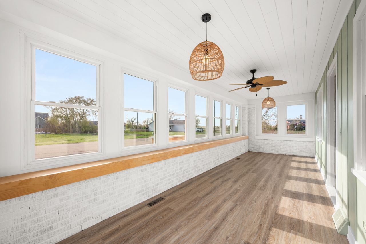 Charming and move-in ready, this well-maintained home blends timeless character with thoughtful updates throughout. A welcoming 12x11 enclosed front porch filled with natural light leads directly into the spacious living and dining areas. Inside, you'll appreciate the home's beautiful original woodwork and built-in cabinetry, adding warmth, charm, and functional storage throughout the living spaces. The main level offers two generously sized bedrooms, a full bath, and a versatile front office-perfect for working from home or additional living space. The kitchen comes fully equipped with appliances included and opens to an oversized first-floor laundry/mudroom, providing abundant space for storage, a table, or workspace. Upstairs, you'll find a private primary bedroom retreat with built-in storage and cozy character. Recent improvements include replacement of all knob and tube wiring, updated light fixtures, fresh paint throughout the first floor, and a newer porch roof. Washer and dryer are also included. Situated on a beautifully professionally landscaped lot, the property also features a detached 2-car garage with gas line hookup, offering potential for a heated workspace. A unique home offering space, character, and functionality-ready for its next owner!