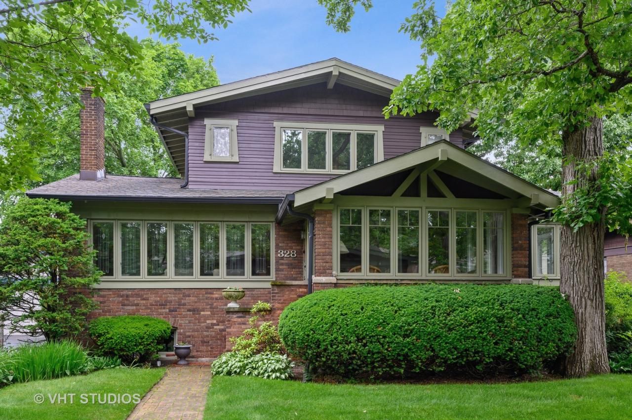 This beautiful prairie-style home is located on one of Wilmette's most historic streets. Walking distance to McKenzie Elementary, Metra, Library, grocery stores, restaurants, shops and much more! This home is a lot larger than it looks- It has 3 bedrooms upstairs including a master walk-in closet. Two additional bedrooms on main level act as a family room and office. Eat in kitchen area with a breakfast bar and table space. Large separate dining room with tons of windows and a huge living room with custom built-ins that adorn the wood burning fireplace. Fantastic 3 season porch in front of house and a large deck and additional patio in back! 2 car garage and great yard space. Huge list of improvements!!!